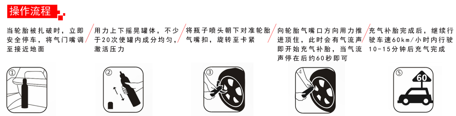 充氣補(bǔ)胎完成后,繼續(xù)行駛車速60km/小時(shí)內(nèi)行駛10-15分鐘后充氣完成
